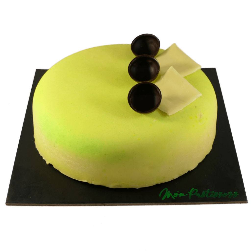 Mousse de llimona amb interior de pa de pessic de mantega, llima i un toc de sal, cruixent d’ametlla i cremós de llimona.