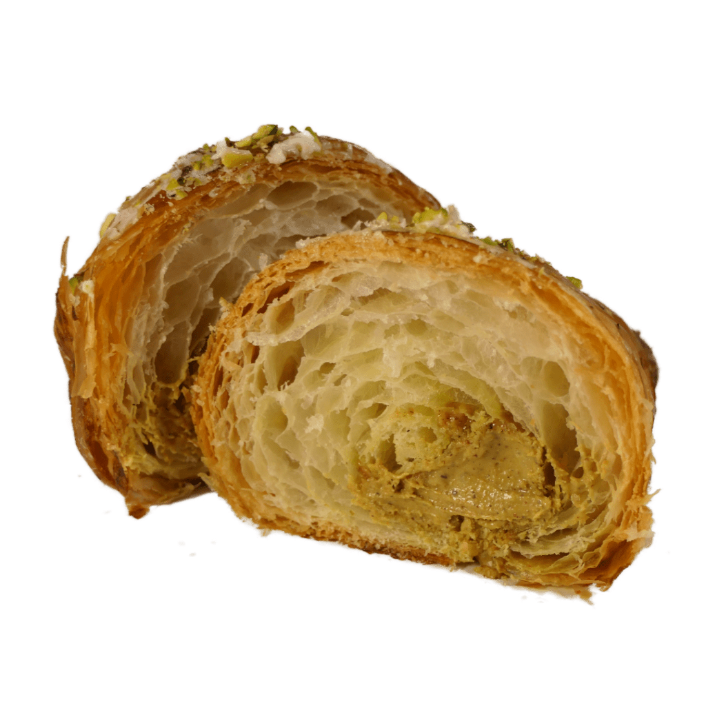 Croissant de mantega farcit de praliné de festuc amb xocolata blanca
